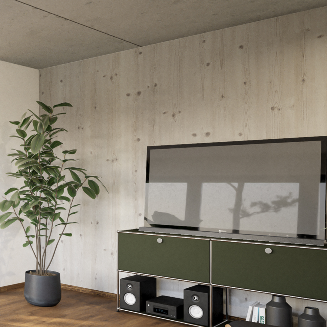 Wir haben drei Optionen für dich zur Auswahl. Dunkel wie in einem Design-Hotel, alpin anmutende helle Eichen-Optik oder der super puristische Sichtestrich. Dass die Entscheidung hier nicht einfach ist, wissen wir. Genau deswegen haben wir diese schicken Böden ausgesucht. Bei den Designböden kannst du am Ende der Konfiguration noch wählen, ob sie in Fischgrätoptik verlegt werden sollen.